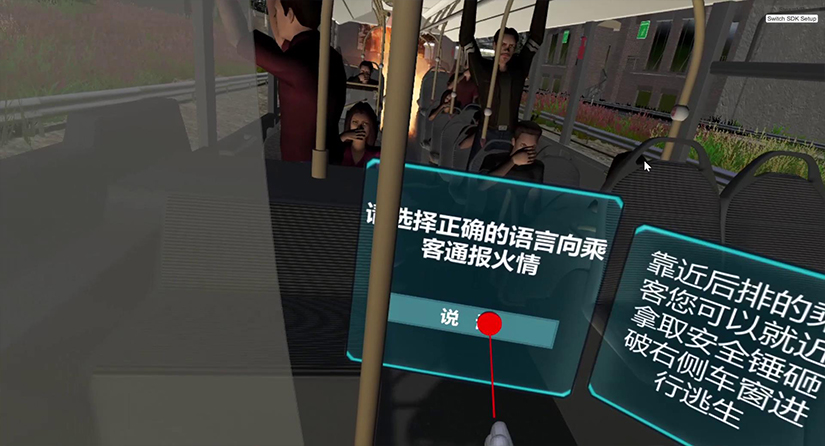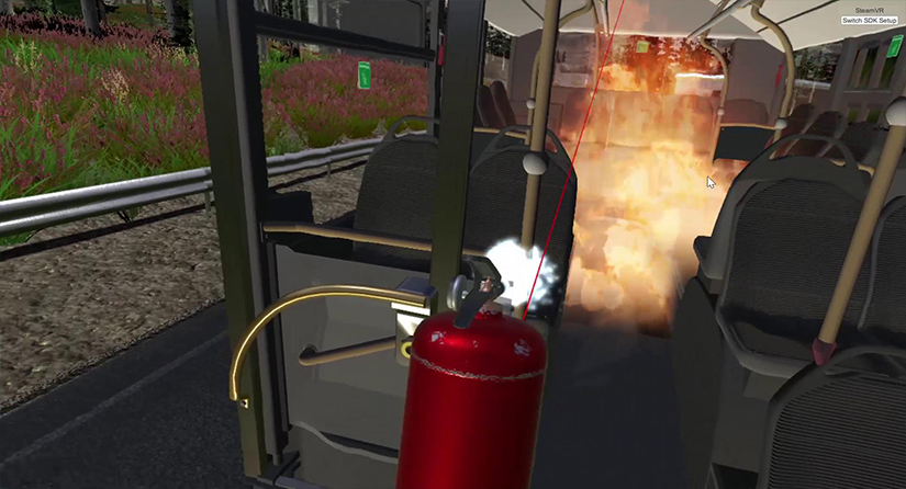 本系統(tǒng)基于三維建模、仿真引擎等技術(shù),配合HTC-viveVR外設(shè),模擬高速客運(yùn)突發(fā)火情開發(fā)一套面向駕駛員(客運(yùn)安全員)針對(duì)火情應(yīng)如何合理安全規(guī)范的組織乘客安全逃離著火車廂,并實(shí)施相應(yīng)的應(yīng)急措施救援體驗(yàn)。