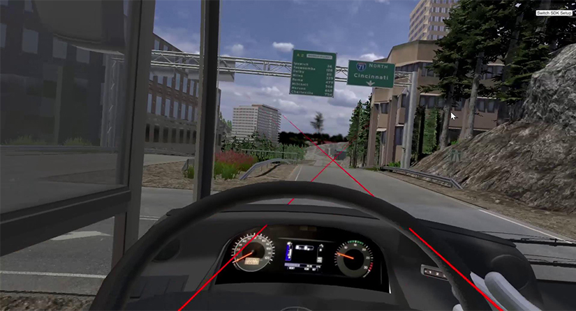 進(jìn)入正式體驗(yàn)環(huán)節(jié),使用手柄點(diǎn)擊開始體驗(yàn)。進(jìn)入到課程駕駛員視角后,使用手柄觸碰方向盤,并扣動(dòng)手柄扳機(jī),開始體驗(yàn),場(chǎng)景有時(shí)間限制,體驗(yàn)為7分鐘:
