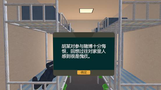 本系統(tǒng)以社區(qū)矯正人員胡某參與賭博的視角。進行了胡某朋友拉人賭博,胡某女兒進行勸阻,胡某置之不理參與賭博,賭博時被捕,被捕后深深懊悔,釋放后被催債,后來妻離子散,感到整個世界都崩塌了的體驗。
