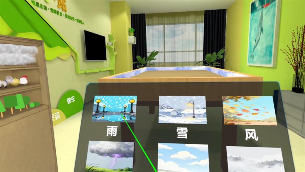 2、體驗者在沙盤里可根據(jù)個人喜好和當時心態(tài),選擇雨天、雪天等6種不同天氣。