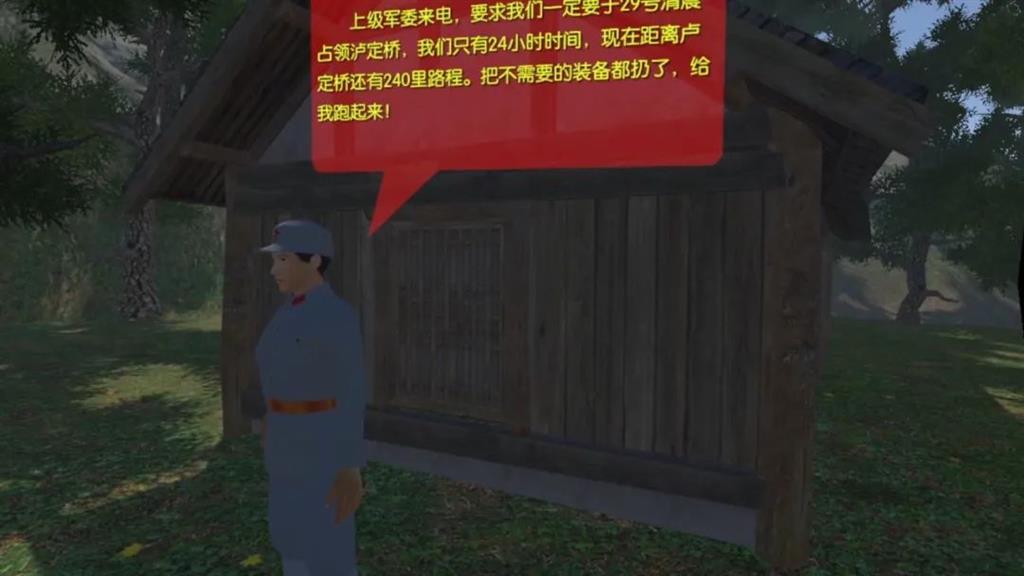在VR飛奪瀘定橋體驗(yàn)系統(tǒng)2.0中,體驗(yàn)者載上VR眼鏡,穿越到1935年5月29日的那天夜晚,眼前便是瀘定橋,橋面腳下是鎖鏈森森,江水濤濤,稍有不慎就會(huì)遇險(xiǎn)落水。環(huán)顧四周,戰(zhàn)友們?cè)跇屃謴椨曛信η斑M(jìn)。拿起手彈,用力一擲,手榴彈便在敵方陣中應(yīng)聲爆炸,熱血澎湃的你恨不得射光所有的子彈,將敵人全部消滅,但是夜色昏暗,橋面不穩(wěn),沒有遮擋,你和戰(zhàn)友們只能抓緊鎖鏈,躲避子彈,緩慢前進(jìn)。