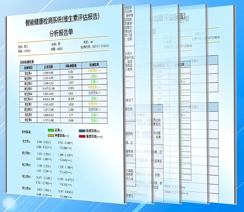 AI健康分析儀提供了46種健康指標(biāo)的檢測報告,涵蓋心血管、免疫系統(tǒng)、內(nèi)分泌等多個方面,幫助用戶全面了解身體狀況。設(shè)備采用非侵入式檢測方式,無需抽血或復(fù)雜操作,接觸即可完成數(shù)據(jù)采集。