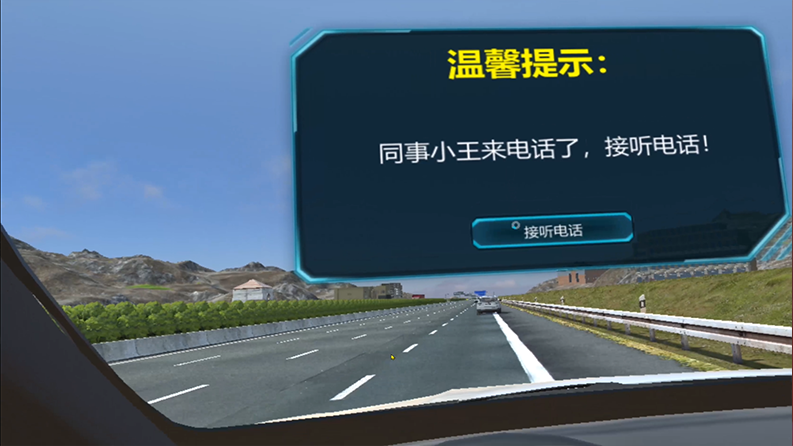 體驗(yàn)者將體驗(yàn)到在高速上接打手機(jī),注意力不集中,最終造成事故。