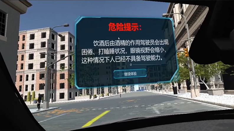 體驗(yàn)者將體驗(yàn)到飲酒后駕車(chē)撞到行人后再次駕駛車(chē)輛,并沖進(jìn)咖啡廳。體驗(yàn)者還會(huì)體驗(yàn)在高速上醉酒駕駛并追尾大貨車(chē),造成嚴(yán)重交通事故。