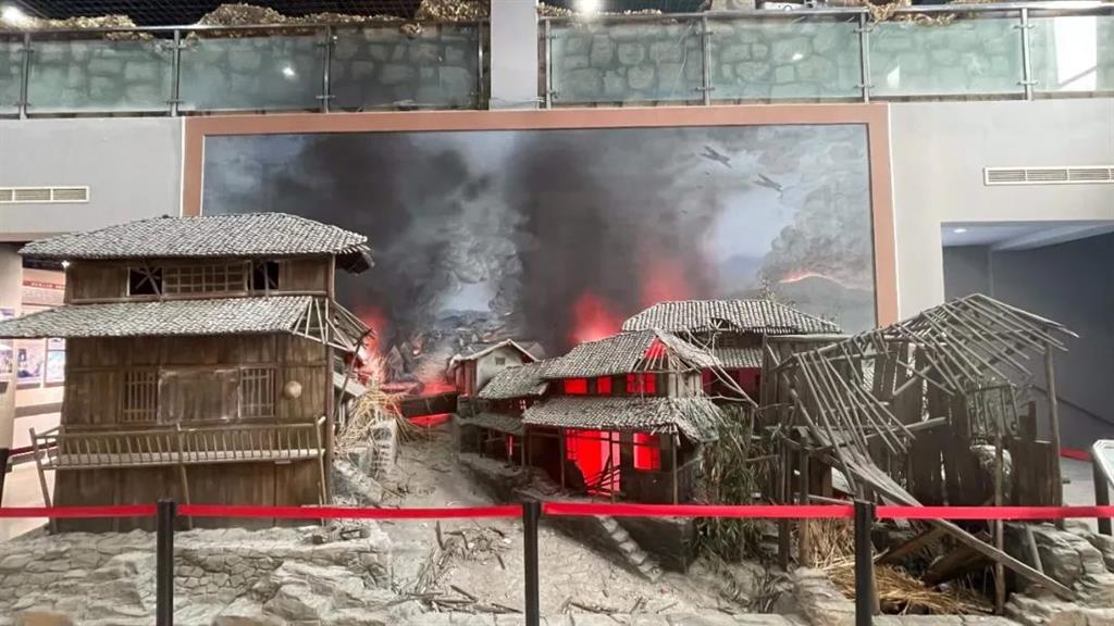 該區(qū)域?yàn)榧o(jì)念館還原場(chǎng)景區(qū),其中轟炸場(chǎng)景是通過(guò)利用現(xiàn)代的聲光電技術(shù)制造出逼真效果,再配合氛圍燈光,模擬還原歷史中日軍飛機(jī)在頭頂上方的投彈、房屋被摧毀發(fā)出劇烈爆炸的場(chǎng)景;芙蓉戰(zhàn)斗是根據(jù)現(xiàn)場(chǎng)場(chǎng)景要求,安裝壁掛有源音響并配合芙蓉戰(zhàn)斗場(chǎng)景,還原展示抗戰(zhàn)歷史事跡;兩塊場(chǎng)景也使還原使紀(jì)念館展覽更加具有立體視覺感、藝術(shù)觀賞性、參與互動(dòng)性和宣傳教育功能。